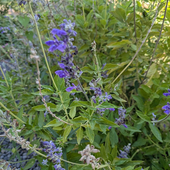 We had many sessions and discussions outside and the property was alive with pollinators and very happy birdsong. Developers did their best to save mature trees on the property and incorporate native plantings into the landscape. Vegetable beds featured leafy greens and baby pumpkins. On the last day, we seeded a new wildflower bed. This place boasts of life.
