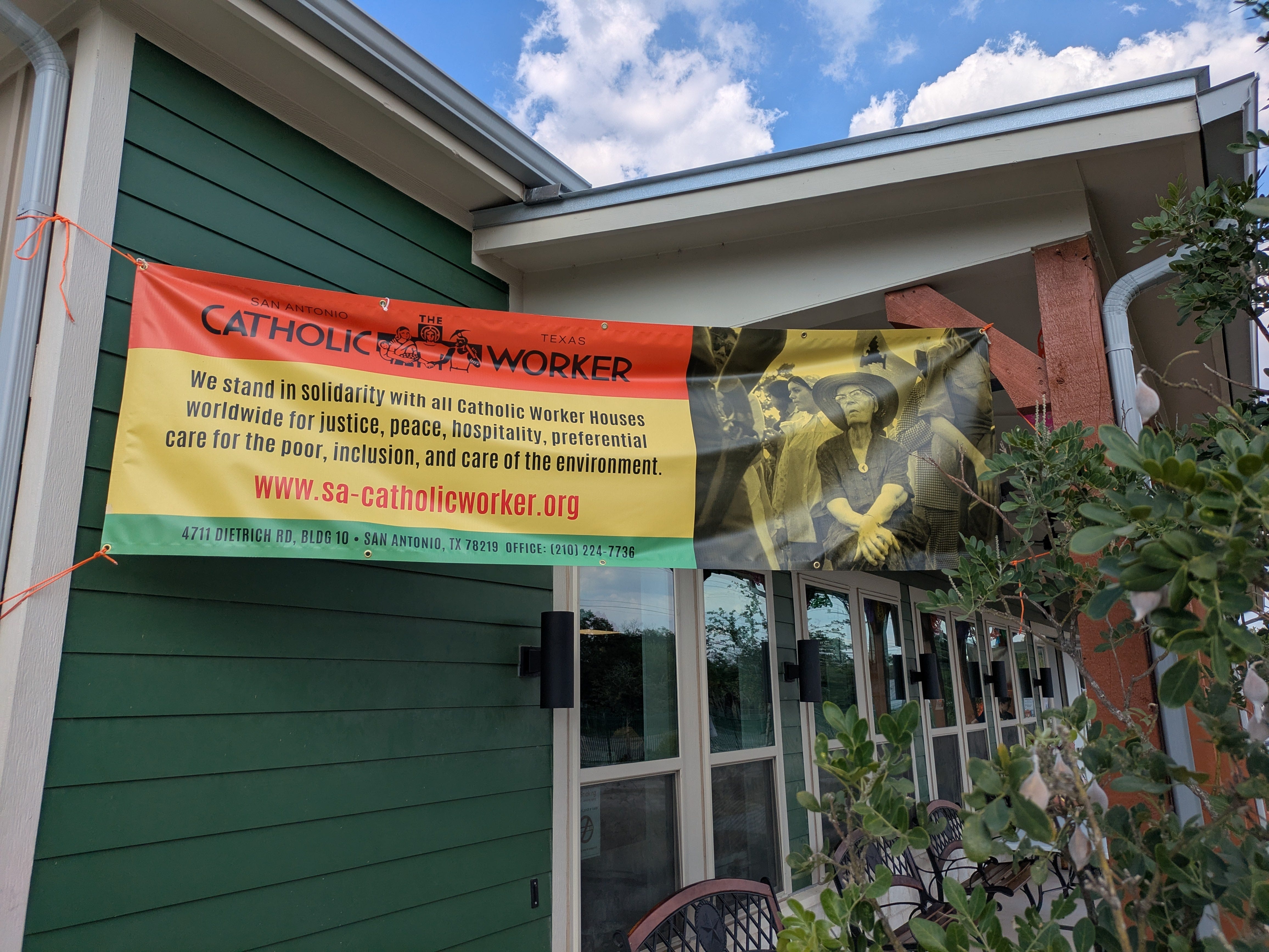 The San Antonio Catholic Worker recently moved to a new location within Towne Twin village, which offers permanent supportive housing to hundreds of seniors who have experienced homelessness. Dorothy is often quoted, “There’s nothing too good for the poor,” and these homes were obviously built in that spirit.